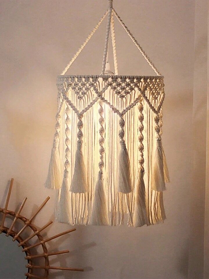 Handmade Macramé Tassel Lampshade – Boho Hanging Light